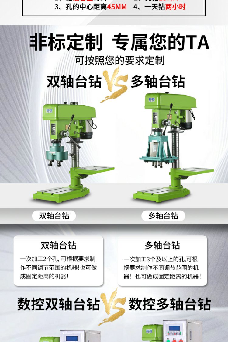 多轴双轴钻床数控工业台钻台式钻攻两用多头攻丝机可调双头钻孔机